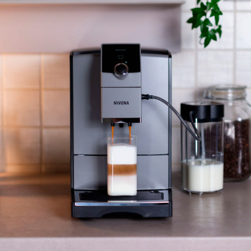 Кофемашина 7 серии с автоматическим капучинатором и удобным управлением. Готовит капучино одним нажатием, можно выбрать порядок кофе-молоко или наоборот в капучино, есть возможность сохранить 5 дополнительных рецептов помимо стандартных программ. Есть управление с телефона. Также эта модель обладает системой настройки предсмачивания Aroma Balance.